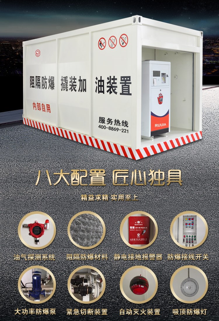 撬裝加油站主體自主品牌加油機自主品牌或國內知名品牌1.7米高單槍油管國內知名品牌6米加油槍國內知名品牌一把靜電接地報警器國內知名品牌一套電子式液位儀國內知名品牌一套氣體探測儀國內知名品牌一套雙層罐測漏儀國內知名品牌一套卸油泵國內知名品牌一臺滅火器國內知名品牌一個爬梯國內知名品牌一套